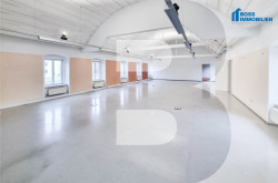 Ein helles imposantes Großraumbüro mit einer Raumhöhe von bis zu 4,60m bietet ausreichend Platz für einen einladenden Empfangsbereich, weitere inspirierende Arbeitsplätze für Ihre Mitarbeiter sowie großzügige Schränke für Akten und Ordner.