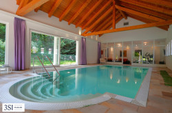 Steinboden, Parkett, Erdwärme, Personenaufzug, Bad mit Fenster, Badewanne, Garage, Alarmanlage, Sauna, Swimmingpool