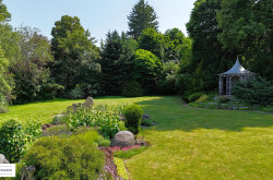 Im Obergeschoß befindet sich die private Rückzugsetage mit Schlafzimmer, zwei luxuriösen Bädern, zwei Ankleidezimmern und einer Terrasse mit spektakulärem Blick über Wien. Ein weiteres Zimmer mit Balkon kann als Arbeits- oder Schlafzimmer genutzt werden. Der Keller, per Lift oder Treppe erreichbar, bietet Technikräume und großzügige Lagerflächen. Die liebevoll gestaltete Gartenanlage bietet absolute Privatsphäre und besticht mit einer Vielfalt an Pflanzen sowie ausgewachsenen Bäumen. Ein erhöht platzierter Pavillon eröffnet einen traumhaften Blick über das gesamte Grundstück, ein Ort der Ruhe und Inspiration. Ein exklusives Highlight ist das Green mit 9 Abschlägen direkt im Garten.