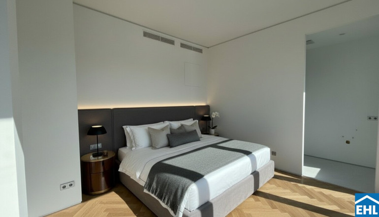 Dank modernster Gebäudetechnik genießen Sie ganzjährig angenehmes Raumklima: Fußbodenheizung und Deckenkühlung in Kombination mit einem innovativen Fassadenlüftungssystem gewährleisten behaglichen Wohnkomfort auf technisch höchstem Niveau.