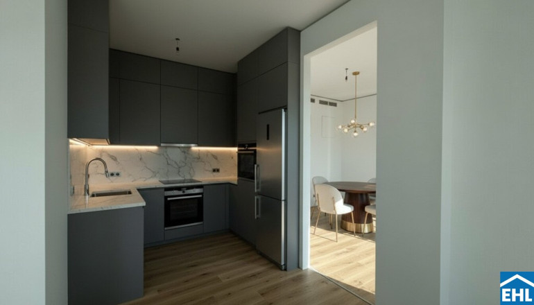 Diese charmante Penthouse bietet auf ca. 56 m² Wohnfläche ein lichtdurchflutetes, durchdachtes Raumkonzept. Die vollverglaste Fassade sorgt für eine helle, freundliche Wohnatmosphäre. Der offene Wohn-Essbereich mit integrierter Küche bildet das Herzstück der Wohnung und wird durch ein separates Schlafzimmer ergänzt, ideal für Singles oder Paare mit Anspruch an Wohnqualität.