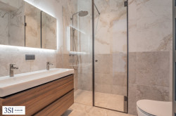 - Zweites Badezimmer mit bodengleicher Dusche und Waschtisch