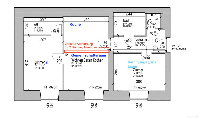 Aktuell ist die Einheit in 2 separate Zimmer sowie einen Gemeinschaftsraum aufgeteilt. Ein Raum davon ist bereits vermietet als Lager. Somit wäre das andere Zimmer und der Gemeinschaftsraum noch zu vermieten. (Kann auch nochmal abgetrennt werden damit 2 Räume entstehen mit einer Teeküche.
