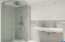 • Großformatiges Feinsteinzeug in den Bädern und Nebenräumen