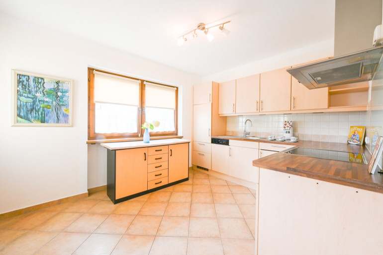 Die gut durchdachte Raumaufteilung sorgt für eine harmonische Atmosphäre. Die hochwertige Einbauküche ist nicht nur funktional, sondern auch ein echtes Highlight für jeden Hobbykoch. Der angrenzende Essbereich bietet Platz für gesellige Abendessen mit Familie und Freunden. Genießen Sie die zeitlosen Fliesen und den warmen Laminatboden, der für zusätzlichen Komfort sorgt. Im Ess- Wohnbereich sorgt ein gemütlicher Kachelofen für behagliche Wärme an kalten Wintertagen.