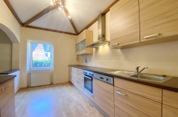 Über einen separaten Eingang gelangt man in die 2. Wohnung im Obergeschoss. Auf ca. 88qm Wohnfläche bietet sie 2 Zimmer, eine große Wohnküche, Bad, WC und einen ca. 6,6 qm großen Balkon und gliedert sich: