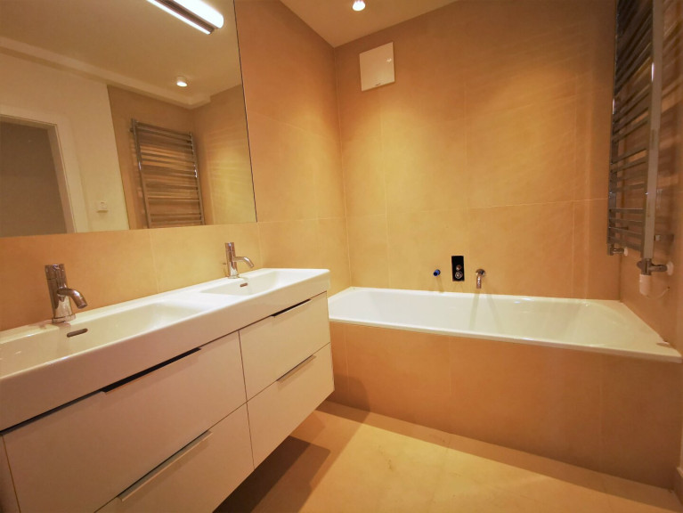 Fussbodenheizung, Klimageräte in jedem Raum, Sicherheitstüt, Gegensprechanlage, elektrische Aussenbeschattung, hochwertige Parkettböden, Feinsteinzeugfliesen im sanitären Bereich, in den Bädern erwartet Sie viel Komfort, Bad mit Badewanne, Dusche, zwei Waschbecken, ein WC, dazu noch ein separates WC, ein eigener Waschraum mit Waschmaschinenanschluss und Gasbrennwertgerät, Velux Fenster elektrisch, etc. Die Küche beinhaltet alle Geräte des täglichen Bedarfs. Es erwarten Sie nur Qualitätsmarken: Miele Geräte, Bora-Bora mit Dunstabzug, Kühlschrank, Tiefkühler, Geschirrspüler, Backoffen, hochwertige Spüle mit Armatur, etc.