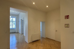 Die fünf großzügigen Büroräume sind mit Klimaanlagen ausgestattet und beeindrucken durch ihre Helligkeit, den großzügigen Schnitt und die charakteristischen Merkmale eines klassischen Wiener Altbaus: hohe Decken mit prächtigen Stuckverzierungen, elegante Flügeltüren und stilvolle Kastenfenster setzen beeindruckende Akzente und verleihen dem Büro eine besondere Atmosphäre mit historischem Flair.