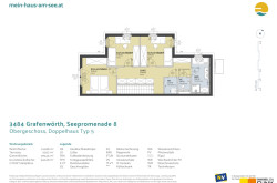 Vor dem Eingang zum Haus haben Sie zwei KFZ-Stellplätze, einen kleinen Vorplatz sowie die ca. 4,5 m² große Gartenhütte. Die gesamte Grundstücksfläche beträgt ca. 342,28 m². Sie betreten die Doppelhaushälfte Seepromenade 8 über einen ca. 4,85 m² großen Vorraum, der ausreichend Platz für eine Garderobe bietet. Linker Hand finden Sie den Haustechnikraum und das Gäste-WC. Gerade aus gelangen Sie zum ca. 45,65 m² großen Wohnküchenbereich, der sich zur etwa 16,62 m² großen Lärchenholzterrasse, dem Garten und zum See hin öffnet eine Treppe führt Sie in das Obergeschoss mit drei Schlafzimmern. Ein Schlafzimmer bietet ca. 13,23 m², die beiden anderen jeweils ca. 10,78 m² Wohnfläche. Das etwa 6,85 m² große Badezimmer verwöhnt mit Doppelwaschtisch, Badewanne und Dusche. Praktisch sind das separate WC und der 2,35 m² große Abstellraum mit Waschmaschinenanschluss.