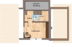 - Dachgeschoss mit lichtdurchflutetem Luftraum und flexiblem Büro-/Arbeitsraum.