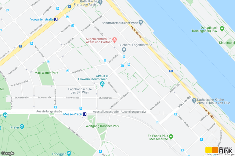 Die gegenständliche Liegenschaft liegt in einem aufstrebenden Teil des 2. Wiener Gemeindebezirks in der Schönngasse in unmittelbarer Nähe zum Wiener Prater und zur Messe Wien. Die U2-Station "Messe-Prater" befindet sich ca. 500 m, die U1-Station "Vorgartenstraße" ca. 700 m entfernt und sind somit zu Fuß in ein paar Minuten zu erreichen. Die nächstgelegenen Stationen der Buslinien 11A und 11B "Hillerstraße" und "Jungstraße" sind nur ein paar Schritte entfernt. Die Anbindung an das öffentliche Verkehrsnetz ist somit als ausgezeichnet zu beschreiben. Auch für den Individualverkehr ist das Objekt sehr gut gelegen. Sowohl die A22 (Donauufer Autobahn) als auch die A23 (Südosttangente) können sehr rasch erreicht werden. Die Fahrzeit in die Wiener Innenstadt (Stephansplatz) beträgt sowohl mit den öffentlichen Verkehrsmitteln als auch mit dem PKW ca. 15 Minuten. Die nächstgelegenen Einkaufsmöglichkeiten für Güter des täglichen Bedarfs (BILLA, EUROSPAR, LIDL etc.) sowie eine Apotheke sind in einem Umkreis von max. ca. 5 Minuten zu Fuß erreichbar. Nach einem anstrengenden Arbeitstag lädt der Wiener Prater zum Sporteln und Entspannen im Grünen ein.