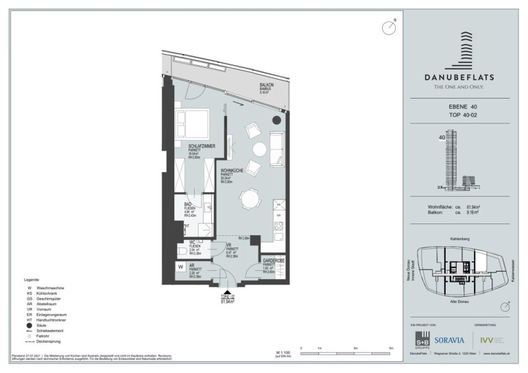 DANUBEFLATS: Premium Living - Edle 2-Zimmer-Wohnung in 40. Stock - Elevate your Lifestyle