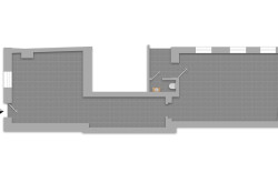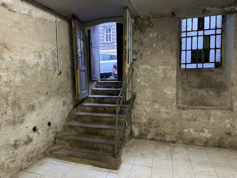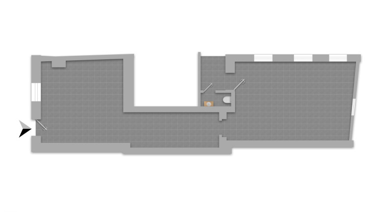 Über eine Stiege gelangt man von der Straße in den ersten Raum. Der zweite Raum ist durch einen Verbindungsgang erreichbar. Im hinteren Bereich befindet sich ein Ausgang ins Stiegenhaus, in welchem sich auch ein WC mit Handwaschbecken befindet, das vom Mieter benutzt werden kann.