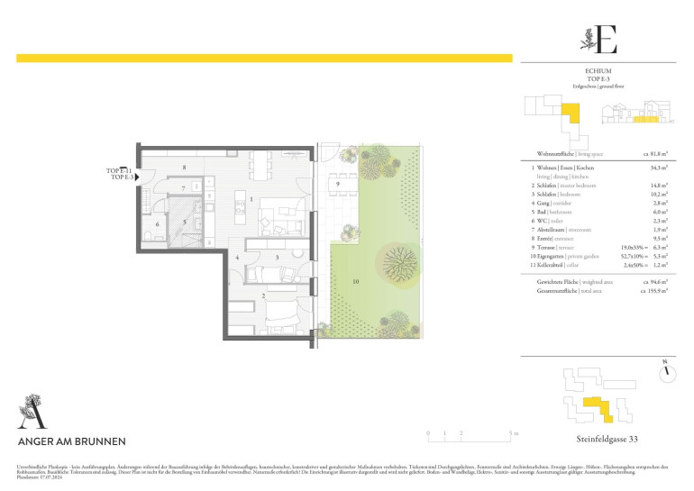 Das Angebot reicht von kompakten 1 Zimmer-Apartments bis hin zu großzügigen 5 Zimmer-Maisonette-Wohnungen. Alle Einheiten verfügen über großzügige Außenflächen in Form von Gärten, Balkonen oder Terrassen mit herrlichem Blick ins Grüne.