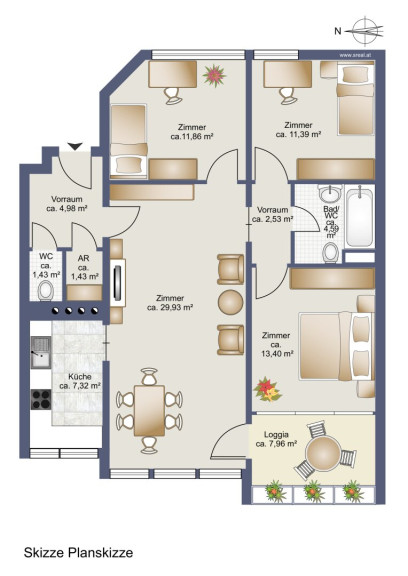 Highlight der Wohnung ist die ca. 8 m² große Loggia, in der Sie nach getaner Arbeit, so richtig erholen und entspannen können.