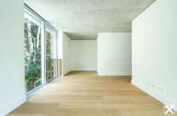 An der Rückseite der Garden Residences befinden sich die Schlafzimmer mit Zugang zum Atrium. Hier liegt der ruhige und introvertierte Teil des Apartments. Machen Sie ein paar Schritte hinaus und sofort werden sie von dem freundlichen Grün aufgenommen, welches den starken, beschützenden Mauern eine sanfte und lebendige Note gibt.