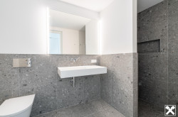 Beim Baden kann das klare Tageslicht ebenfalls genossen werden. Ausreichende Abstellbereiche und Ankleideräume sorgen für angenehm entspannte Ordnung. Luxus für Ihr Herz auf allen Ebenen.