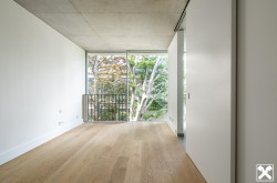 An der Rückseite der Garden Residences befinden sich die Schlafzimmer mit Zugang zum Atrium. Hier liegt der ruhige und introvertierte Teil des Apartments. Machen Sie ein paar Schritte hinaus und sofort werden sie von dem freundlichen Grün aufgenommen, welches den starken, beschützenden Mauern eine sanfte und lebendige Note gibt.
