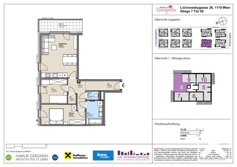 Die Wohnlage am Lichnowskygasse 26 bietet eine exzellente Kombination aus ruhiger, grüner Umgebung im aufstrebenden 11. Bezirk und direkter Anbindung an das öffentliche Verkehrsnetz (Straßenbahnlinien 11/71 vor der Haustür). Bildungseinrichtungen, Nahversorger sowie Freizeit- und Grünräume sind unmittelbar erreichbar. Das Neubauprojekt überzeugt durch nachhaltige Bauweise und moderne Ausstattung, ideal für anspruchsvolles Wohnen mit urbaner Vernetzung.