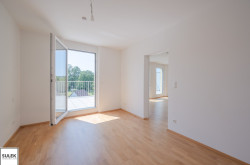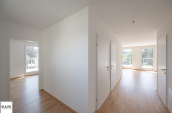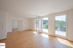 Die Wohnung Top 10 im Dachgeschoß (2. OG) von Haus 3 bietet auf 75,4 m² ein durchdachtes Raumprogramm mit Vorraum, drei Zimmern, Abstellraum, Badezimmer und separatem WC. Von allen Zimmern führt der Ausgang auf die rund 48 m² große Terrasse, die den Wohnraum um wertvolle Freifläche erweitert. Eichen-Echtholz-Parkett, großformatige Fliesen mit hochwertiger Keramik in den Nassräumen sowie eine Sicherheits-Eingangstüre runden das Gesamtpaket ab und sorgen für Wohnkomfort auf zeitgemäßem Niveau. Zusätzlich gehören ein Kellerabteil sowie optional verfügbare Garagenplätze in der Tiefgarage zum Angebot.