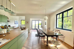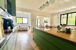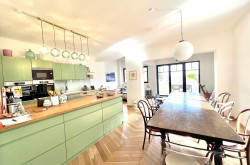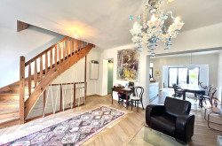 Entrance hall (4m²), large living and dining room (62m²), access to a south east facing terrace overlooking the rear garden