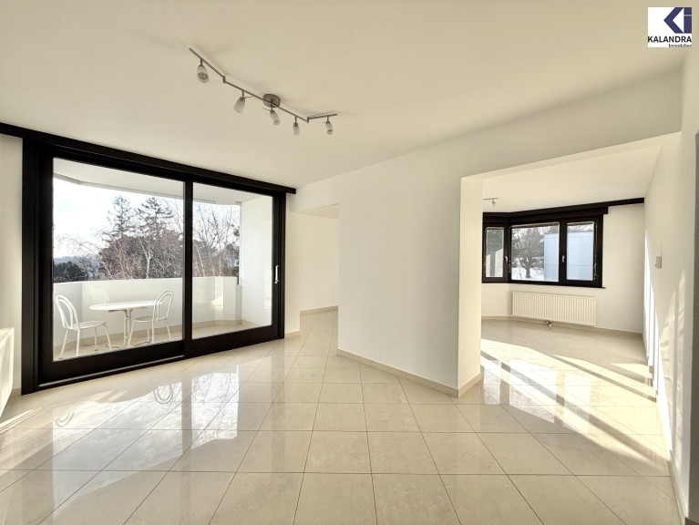 Vorraum, großzügige zentrale Eingangshalle (ca. 23m²), großes Wohnzimmer (ca. 26m²) mit Grünblick, von beiden Ausgang auf eine ca. 6m² große Loggia mit Blick auf den auf den Pötzleinsdorfer Schloßpark, große Küche (ca. 11m²), 3 Schlafzimmer (ca. 11m², 11m² & 9m²), 2 begehbare Schrankräume, ein Wannenbad mit WC (ca. 5m²), ein Duschbad sowie ein separates WC, Garderobe und Abstellraum.