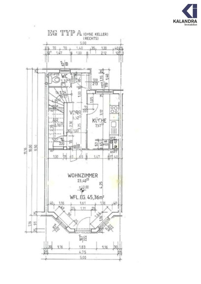 großzügiger Vorraum (ca. 5m²) mit Gäste-WC, Wohnzimmer (ca. 23,40m² ), Küche (ca. 8m²)