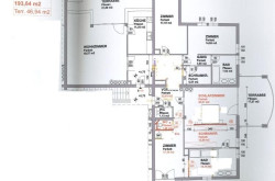 Entrance area, 38m² living room with a spacious 21m² south-west terrace and adjoining small 7m² kitchen, 36m² open kitchen-living room with dining area, 3 spacious bedrooms (16m², 17m² & 29m²) each with 2 terraces (7m² & 6m²), a closet room, a walk-in built-in -Cloakroom with approx. 8m box length, 2 bathrooms