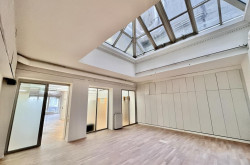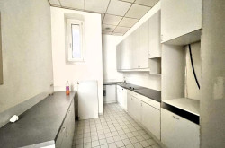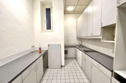 Großraumbüro mit 2 Balkonen, 3 weitere Zimmer, Abstellraum, Küche, 2 separate WC-Anlagen.