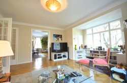 - Eichen-Parkettboden, Flügeltüren (mit Glaseinsätzen), Holz-Kastenfenster,