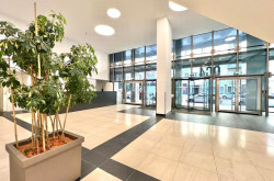 Die großzügige Eingangshalle mit Lift-Lobby schafft eine eindrucksvolle Atmosphäre.