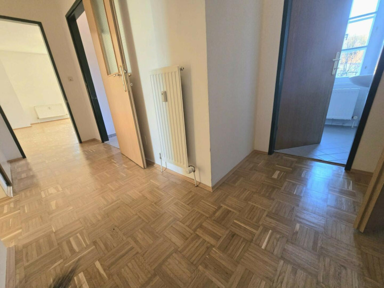Vom einladenden Vorraum gelangt man zu verschiedenen Räumen. Die Wohnung besteht aus einem geräumigen Wohnzimmer und zwei Schlafzimmern. Die separate Küche ist mit allen notwendigen Geräten und einem Fenster ausgestattet. Ein Schlafzimmer und das Wohnzimmer haben Zugang zu einem Balkon.