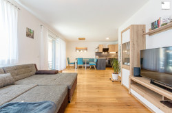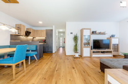 Insgesamt verfügt die Wohnung über ca. 73 m² Wohnfläche und ist ideal geschnitten. Herzstück der Wohnung ist der helle und offene Wohn- und Essbereich mit über 30 m², der bereits mit einer neuwertigen Tischlerküche inklusive modernen Geräten ausgestattet ist.