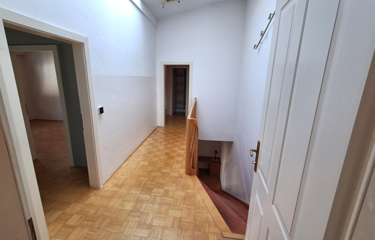 Die gemütliche 4-Zimmer-Wohnung über zwei Etagen liegt in einem kleinen 4 Parteien Haus südlich des Stadtzentrums. Auf der ersten Ebene (Hochparterre) befindet sich ein Vorzimmer, Gäste-WC, Wohnzimmer mit Terrasse, Küche und eine geräumiger Abstellraum mit WM-Anschluß. Das Obergeschoß umfasst ein Bad mit Wanne, Flur, 3 Zimmer und einen Schrankraum. Alle Zimmer sind mit Parkettboden ausgestattet. Die Räume sind nach Osten ausgerichtet mit Blick auf die Grünflächen des Wohnhauses. Zur Wohnung gehört ein KFZ-Stellplatz und Kellerräume. Gute Nachbarschaft wird hier groß geschrieben. Die Verwaltung der kleinen Anlage erfolgt in Eigenverwaltung und spart dadurch Kosten.