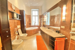 - marble bathroom with double washbasin