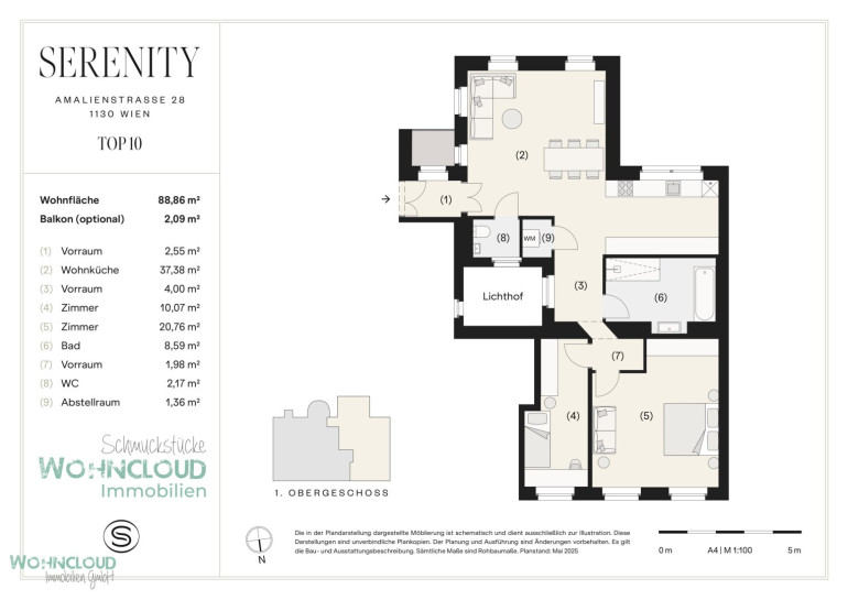Ober St. Veit zählt zu den begehrtesten Lagen Hietzings – ein Ort mit Geschichte, Charakter und Lebensqualität. Umgeben von alten Gärten, eleganten Altbauten und ruhigen Seitengassen entfaltet Serenity seinen besonderen Charme. Die U4 ist in wenigen Minuten zu Fuß erreichbar, genauso wie Schloss Schönbrunn, der Lainzer Tiergarten oder ausgewählte Lokale und Boutiquen. Hier verbindet sich das Beste aus Stadt und Natur – mit Kultur, Kulinarik und einem Umfeld, das zum Ankommen einlädt. Ein Morgenkaffee in Ober St. Veit, danach ein Spaziergang im Schönbrunner Schlosspark – hier zeigt sich Wien von seiner entspannten, stilvollen Seite.Beschreibung der Immobilie
