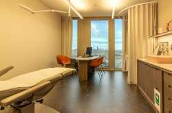 The spacious, high-ceilinged, and impeccably equipped treatment and waiting rooms provide a relaxing and welcoming atmosphere for patients.