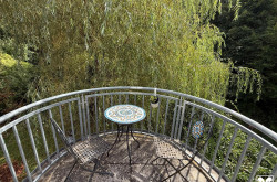Ein besonderes Highlight ist der Zugang zur Wohnung über den historischen Turm des Gebäudes, der dieser Immobilie ihren einzigartigen Charakter verleiht.