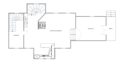Das Erdgeschoß ist dem geschäftlichen Bereich gewidmet: Ein helles Geschäftslokal mit eigenem Eingang ermöglicht eine repräsentative Nutzung für Kundenverkehr oder Büroflächen. Ergänzt wird dieser Bereich durch ein angrenzendes Büro sowie ein separates WC, wodurch ein funktionales und zugleich einladendes Arbeitsumfeld entsteht.