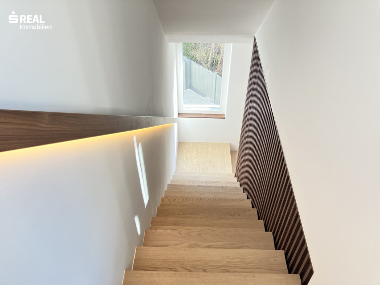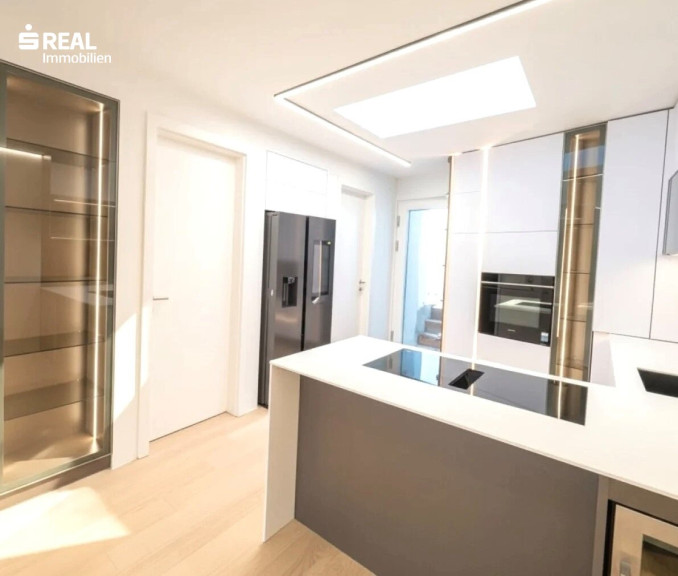 Besonderer Wert wurde auf Qualität und Atmosphäre gelegt: maßgefertigte Tischlerküchen, stilvolle Einbaumöbel, Naturholzparkett und elegant ausgestattete Bäder schaffen ein Wohngefühl, das modern und gleichzeitig warm wirkt. Ein offener Kamin sorgt zusätzlich für eine besondere Stimmung in den Wohnräumen.
