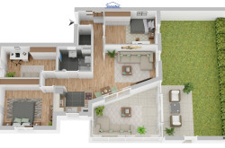 - Moderne, helle Böden ergeben ein freundliches Wohngefühl und bieten stufenfreien Zugang zu allen Räumen