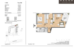 Top 28 befindet sich in der Erdgeschoß, ist nordöstlich ausgerichtet und teilt sich wie folgt auf: