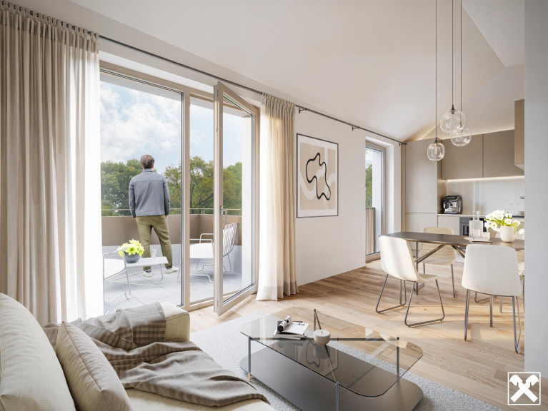 Unabhängig von der Wohnungsgröße umfasst der Erwerb einer Wohnung ein Kellerabteil sowie die Benützungserlaubnis vom Müll- und Fahrradraum sowie der Allgemeinflächen. In der hauseigenen Tiefgarage können gegen Aufpreis Tiefgaragenparkplätze zusätzlich erworben werden.