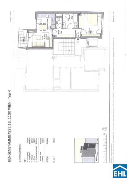 Die Wohnung selbst liegt im 1. Obergeschoss des Hauses und verfügt über eine Wohnküche, ein Schlafzimmer, ein Badezimmer mit Wanne und ebenerdiger Dusche, eine separate Toilette und einen Vorraum. Vom Wohnzimmer aus gelangt man auf den knapp 5 m² großen Balkon, der zum gemütlichen Verweilen einlädt.