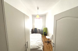 Das Schlafzimmer ist ein ruhiger Rückzugsort, der Ihnen erholsame Nächte garantiert. Es bietet genügend Platz für einen großen Kleiderschrank und sorgt für eine angenehme Wohnatmosphäre. Das Badezimmer ist mit einer Dusche, einem Waschbecken und einem Waschmaschinenanschluss ausgestattet.