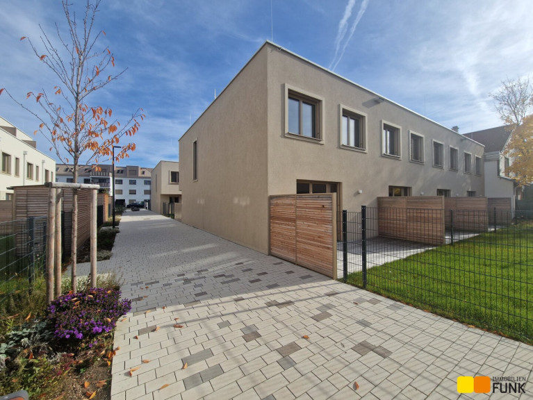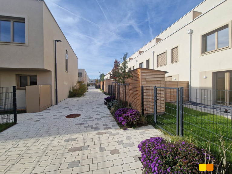Das soeben fertiggestellte Neubauprojekt „STADT küsst LAND“ ist ein Bauvorhabenvon VI-Engineers Bauträger GmbH & Co KG und entsteht zentrumsnah in Stammersdorf auf einem ca. 10.000 m² großen Areal, eingebettet zwischen Brünner Straße und Jedlersdorfer Straße in 1210 Wien. Es umfasst insgesamt 46 freifinanzierte Reihenhäuser mit Eigengärten und Terrassen sowie 53 zugewiesene PKW-Stellplätze mit nachrüstbarer E-Lademöglichkeit. Ansprechende Grundrisse, eine werthaltige Qualität dank Ziegelmassivbauweise, ein nachhaltiges Energiekonzept mit hauseigener Luftwärmepumpe und Photovoltaik-Anlage am Dach, eine hochwertige Ausstattung wie Fußbodenheizung, außenliegender Sonnenschutz mit Elektroantrieb, Eichenparkettböden und Feinsteinzeug zeichnen zudem das moderne Projekt aus. Alle Bilder: © VI-Engineers/ Toni Rappersberger. Fotos Innenräume: Musterhaus. Machen Sie sich selbst ein Bild- wir führen Sie gerne durch die Häuser.