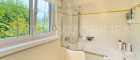 # Bathroom with senior-friendly bathtub, sink, illuminated mirror cabinet, washing machine connection
