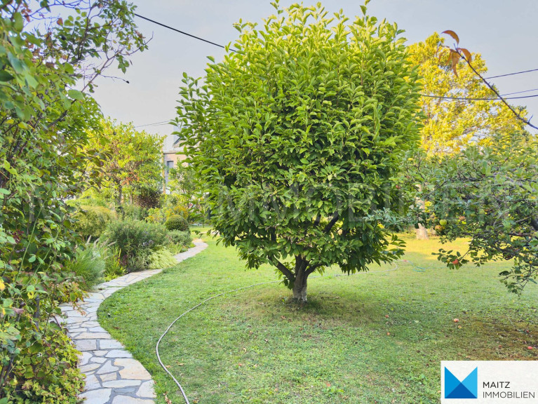 Der prächtige Garten wurde vom Eigentümer mit grünem Daumen angelegt und immer liebevoll gepflegt. Nebst Obstbäumen (großgewachsene Feige, veredelter Apfel, Pfirsich etc.) werden Sie wunderbare Blühpflanzen, ein Gewächshaus und einen kleinen Gartenteich mit Seerosen entdecken. Einige dieser Pflanzen möchte sich der Verkäufer gerne vorbehalten (nach individueller Absprache).