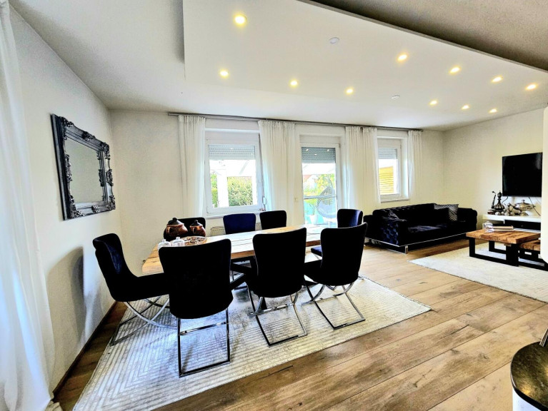 - Großzügiger Wohn- und Essbereich mit direktem Zugang zur Terrasse und in den Garten – ideal für gemeinsame Familienabende und gesellige Runden.