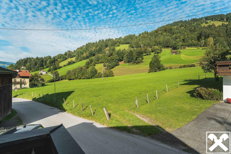 Das rechteckige Grundstück mit gepflegtem Garten bietet Sonne von früh bis spät und traumhaften Blick auf die Kitzbüheler Alpen. Terrasse, zwei Balkone, hohe Kellerräume sowie Garage und Stellplätze runden das Angebot ab.